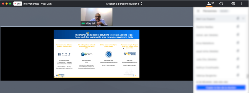 Covid-19 pandemic and its consequences for mica-dependent communities in Bihar and Jharkhand were naturally at the heart of all discussions. Beyond its non-questionable impact on the year 2020, the two events also presented the progress made by the Initiative in this tough context, as well as the next milestones to come for RMI. A panel composed by key experts and partners, focusing on the importance of creating a livable legal framework for sustainable mica mining ecosystem in India, brought additional perspectives and examples, for RMI to build these next steps.